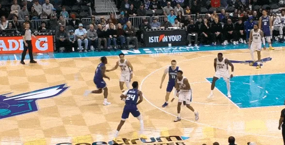 小乔强侧持球单打巴洛吸引弱侧乌布雷回收协防,米勒见状立即向底角游弋拉开——接小乔突分,撤回三分线外大空位三分稳稳命中。